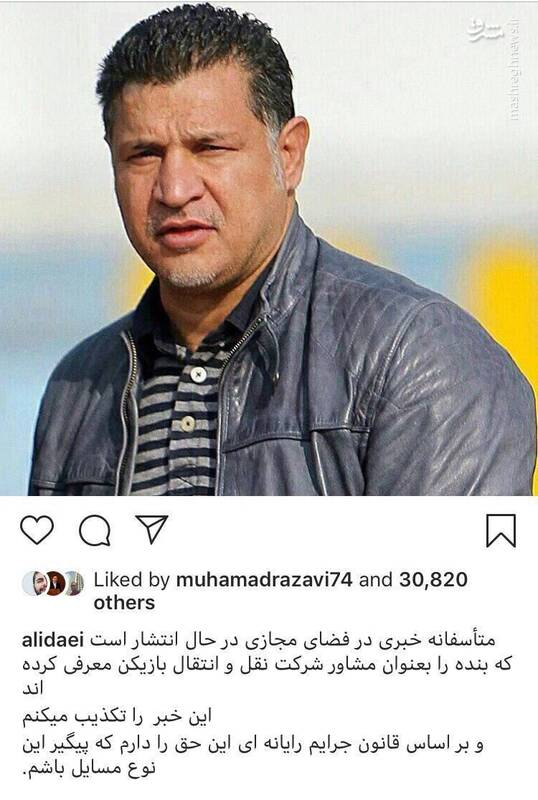 به گزارش اسلامیک اسپرت، علی دایی در با انتشار مطلبی از طریق صفحه اینستاگرام خود، فعالیتش در شرکت نقل و انتقالات فوتبالی را تکذیب کرد.